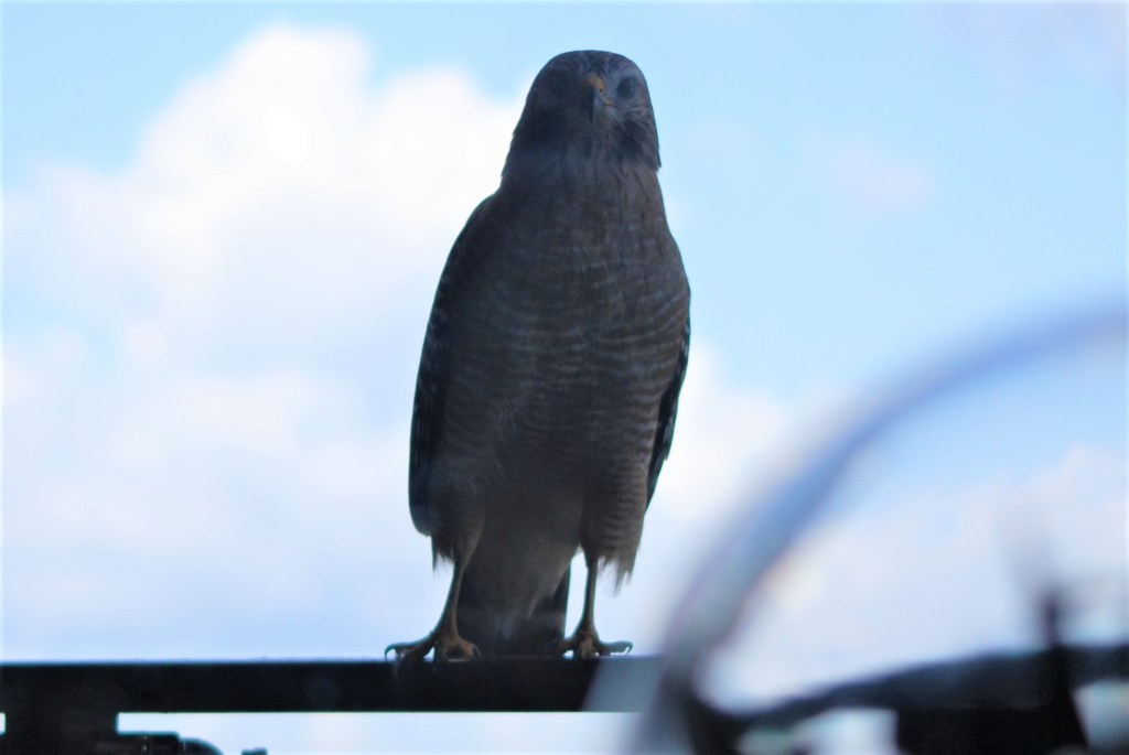 I didn’t really want to invite his friends to join him in my car, but he needed to exit. I tried poking under every spot I could with my big umbrella while leaving all the doors and hatch open. No luck. I decided to crack the back windows open just enough for him to sneak out and hope that he would overnight.