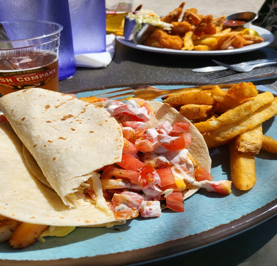 Shrimp Tacos – blackened grilled shrimp, spicy aioli, pico de gallo, lime sour cream, cabbage slaw for Eva (oops – took a bite before remembering to take a picture!)